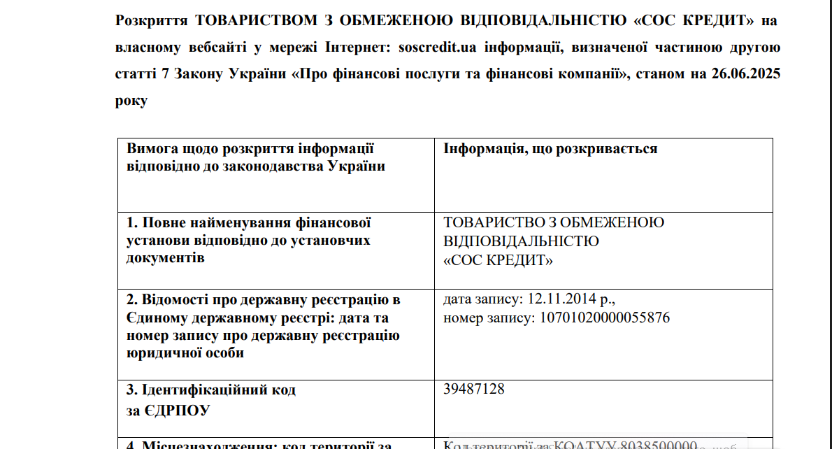 Раскрытие информации о Финансовом учреждении на 26.08.2022